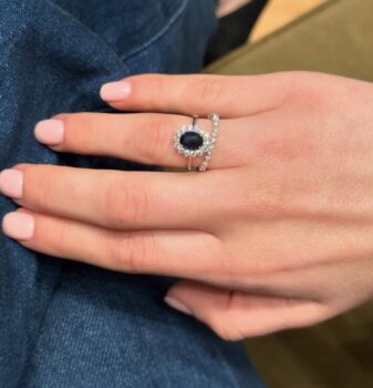 Mujing Jewelry European and American Classic Artificial Sapphire Oval 7*9 Zircon Ring Cross-Border E-Commerce Export Best-Selling Model