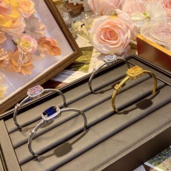 Camellia cross-border new bright rectangular color treasure bracelet suit women’s back design inlaid high carbon zirconium flash bracelet