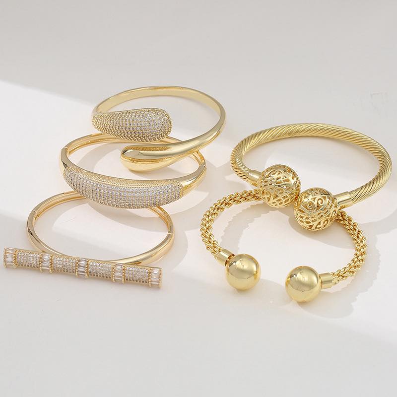 Fashion new all-match copper plated 18k gold set zircon opening adjustable exquisite bracelet women’s exquisite bracelet wholesale