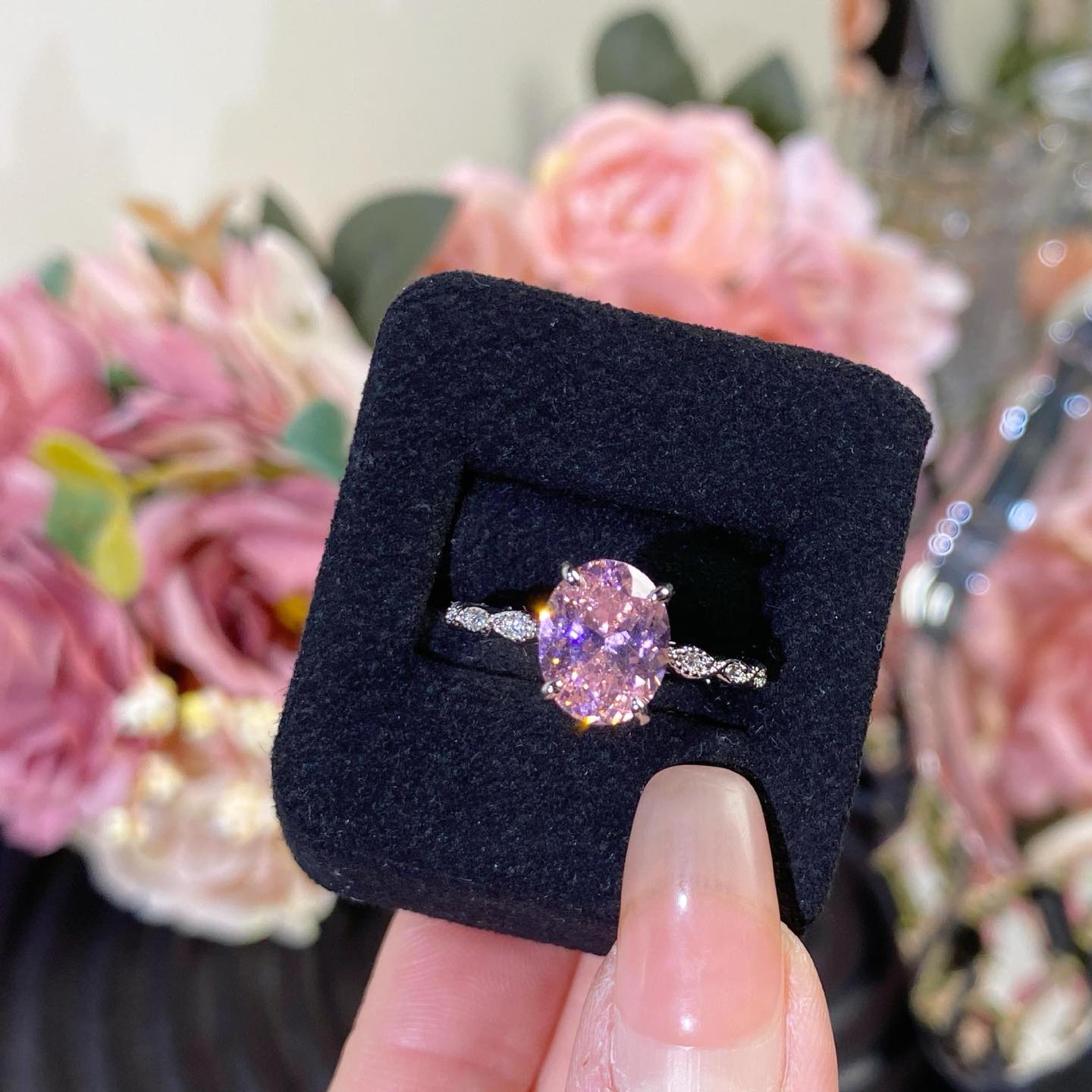 Elegant and colorful, this oval-cut ring features a stunning central stone and a pavé-encrusted split shank band.