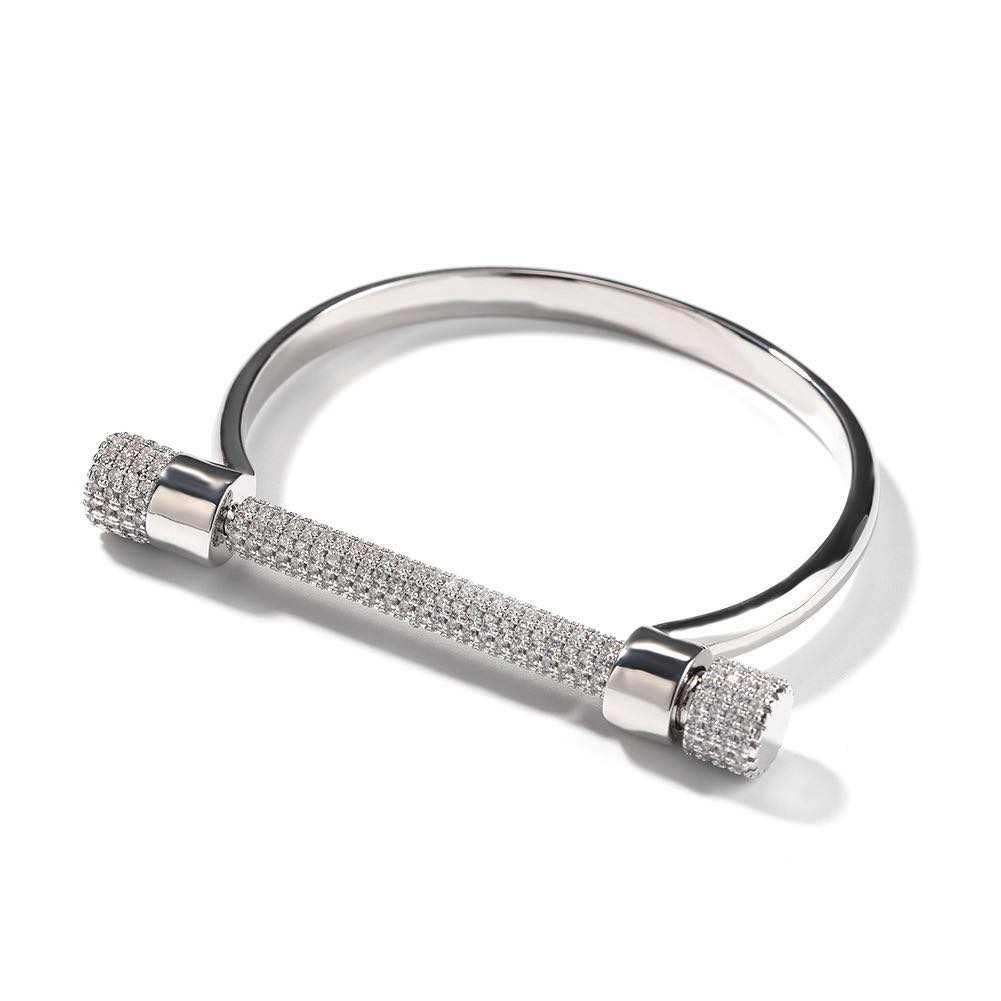 Cross-border European and American copper inlaid zircon full diamond bracelet personalized creative horseshoe bracelet hip-hop trend jewelry wholesale
