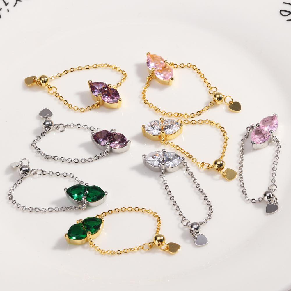 European and American Cross-border New Copper Gold Plated Double Love Stretch Ring Women’s Fashion All-match Adjustable Chain Personalized Ring