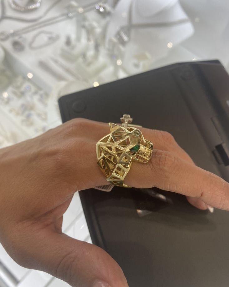 Cross-border source high version smooth hollow leopard head ring V gold plated rose gold big leopard head series couple ring