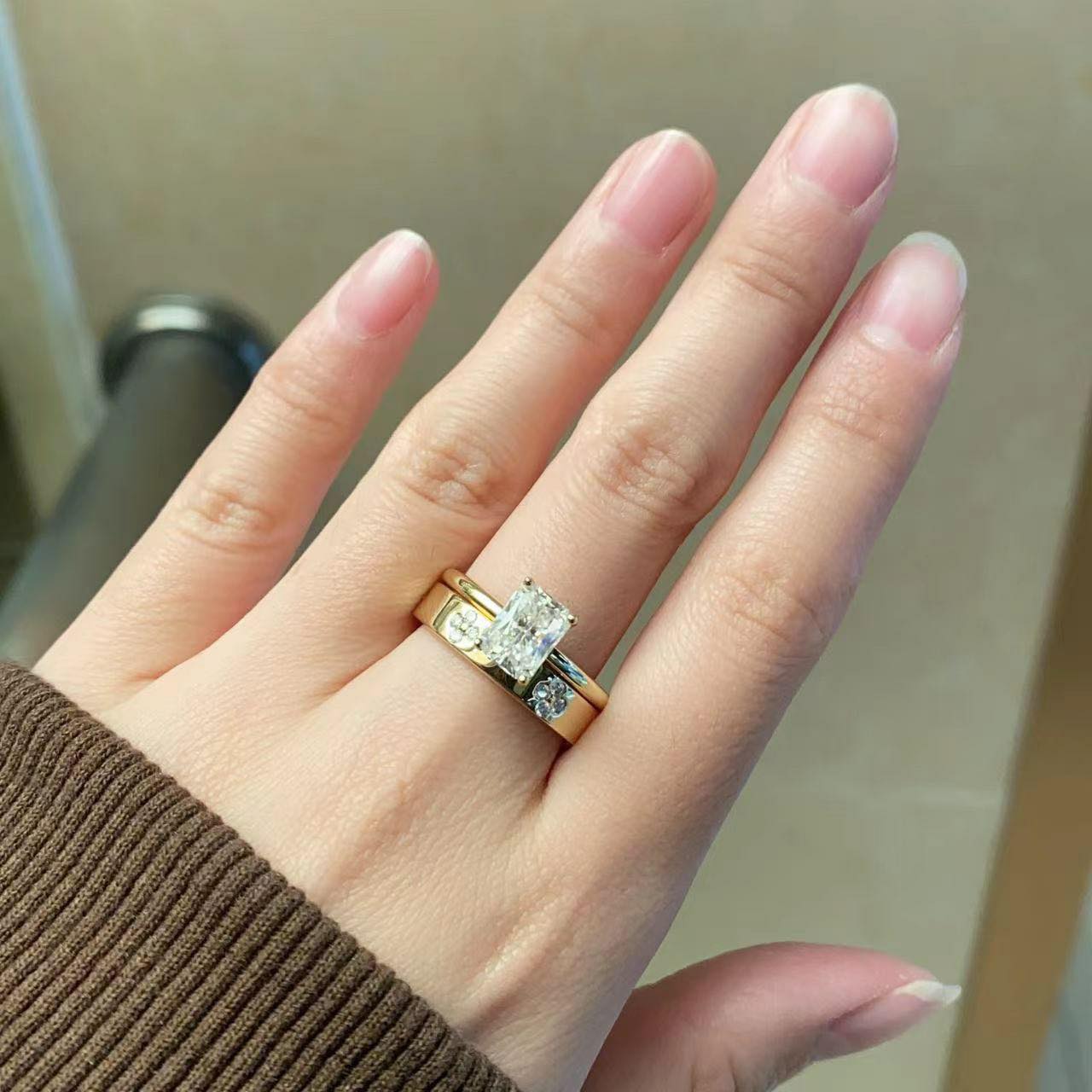 Ins Hot Selling 1.5mm Moissanite Four-Leaf Clover S925 Silver Plated 18K Gold Wedding Ring Ladies Stacking Set