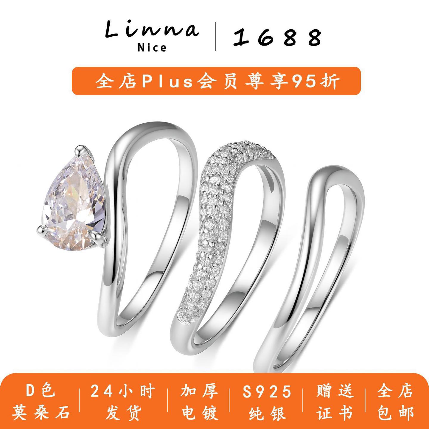 S925 Silver Combination Three-Piece Set Drop-Shaped Moissanite Ring Set Still Stacked Ring suit Live Wholesale