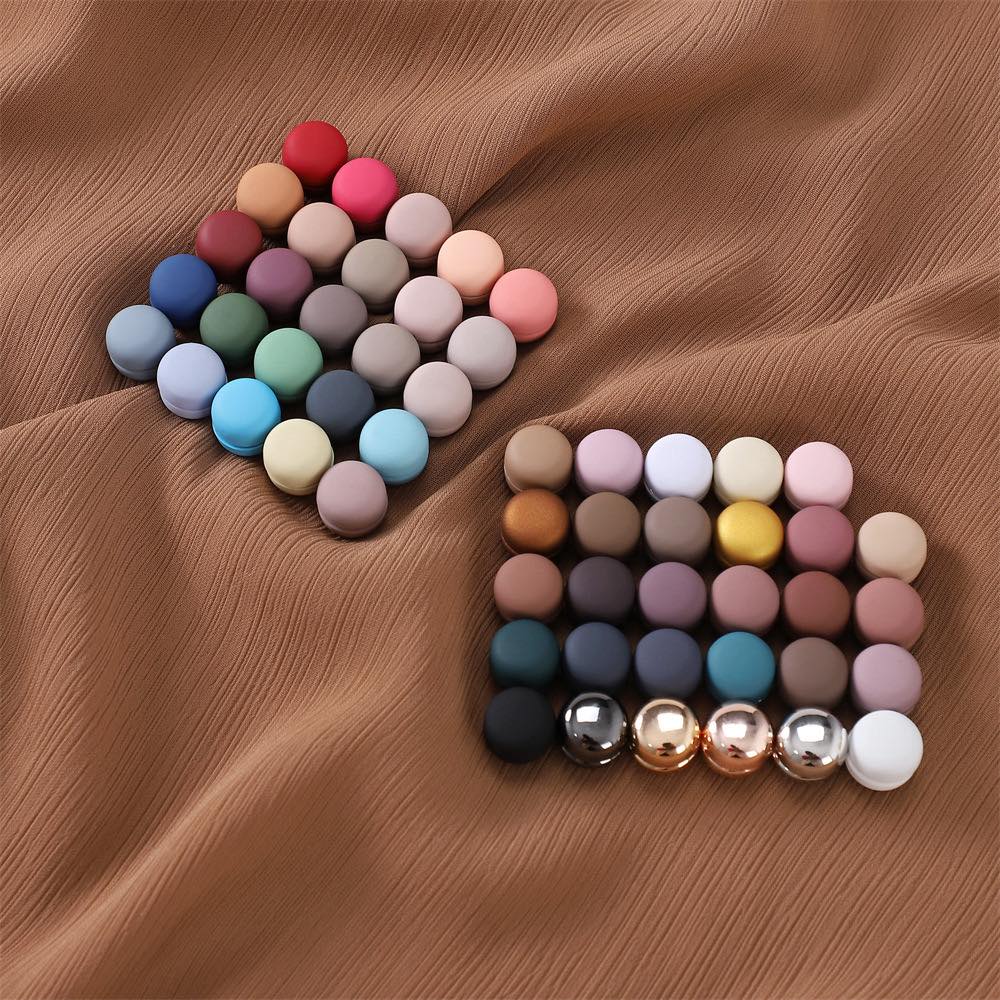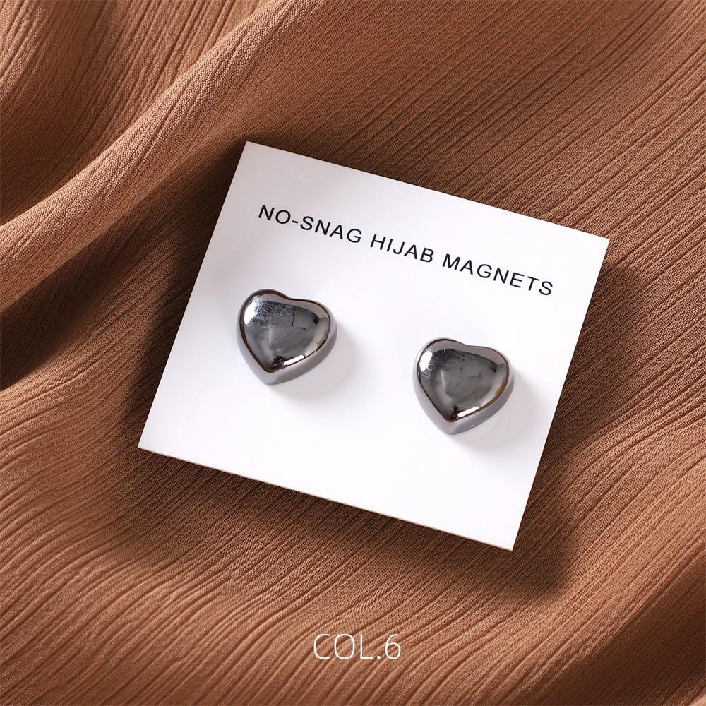 Hijab magnets are an alternative to traditional safety pins, designed to hold the hijab fabric in place without creating holes or damaging delicate materials. The magnet shown is one half of a pair; the other piece would be placed on the underside of the fabric to create a strong, secure hold. The design of these magnets makes them both functional and aesthetically discreet.