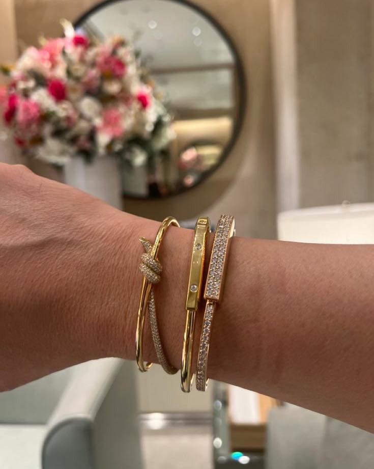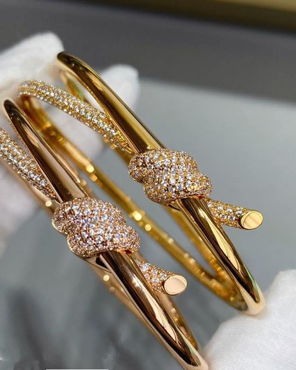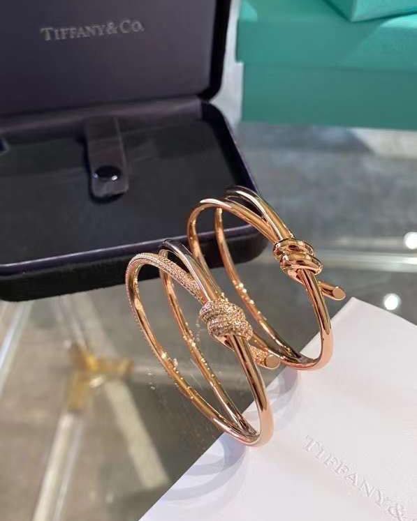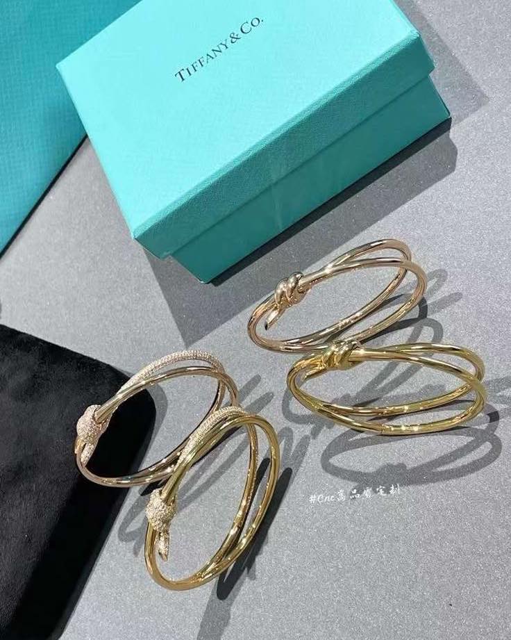 The iconic Tiffany & Co. Knot bracelets—a symbol of connection and strength in rose gold.
