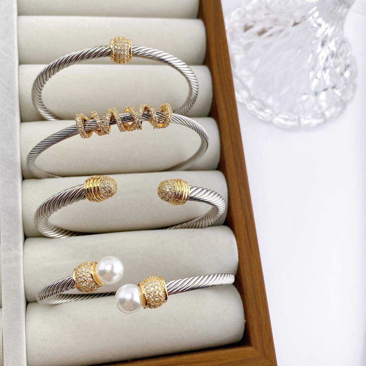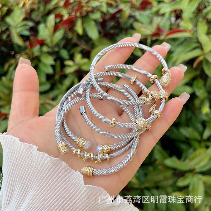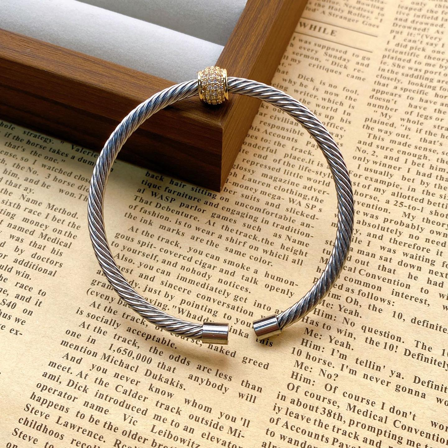 Cross-border hot steel wire rope gold bracelet European and American stainless steel non-fading Joker titanium steel twist bracelet